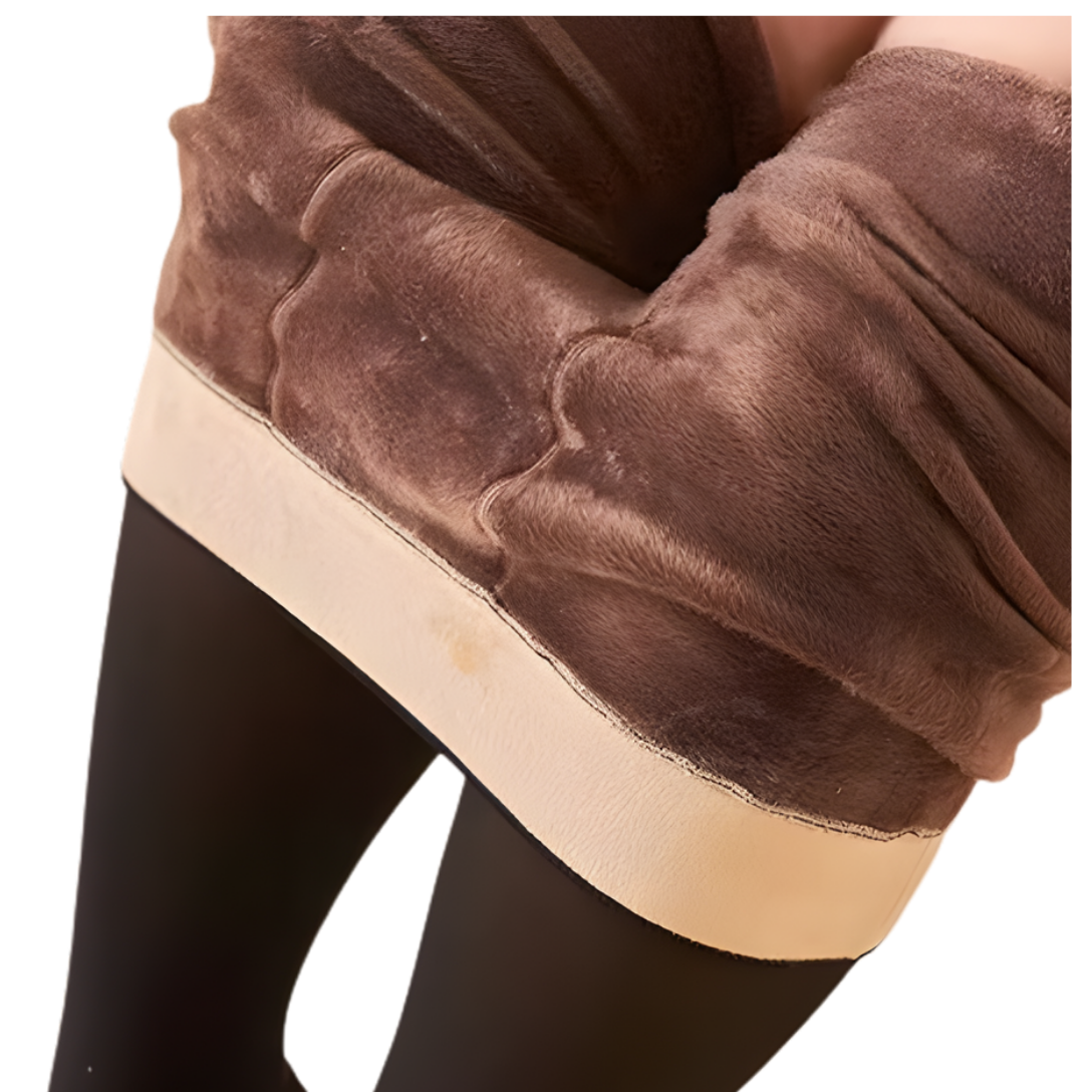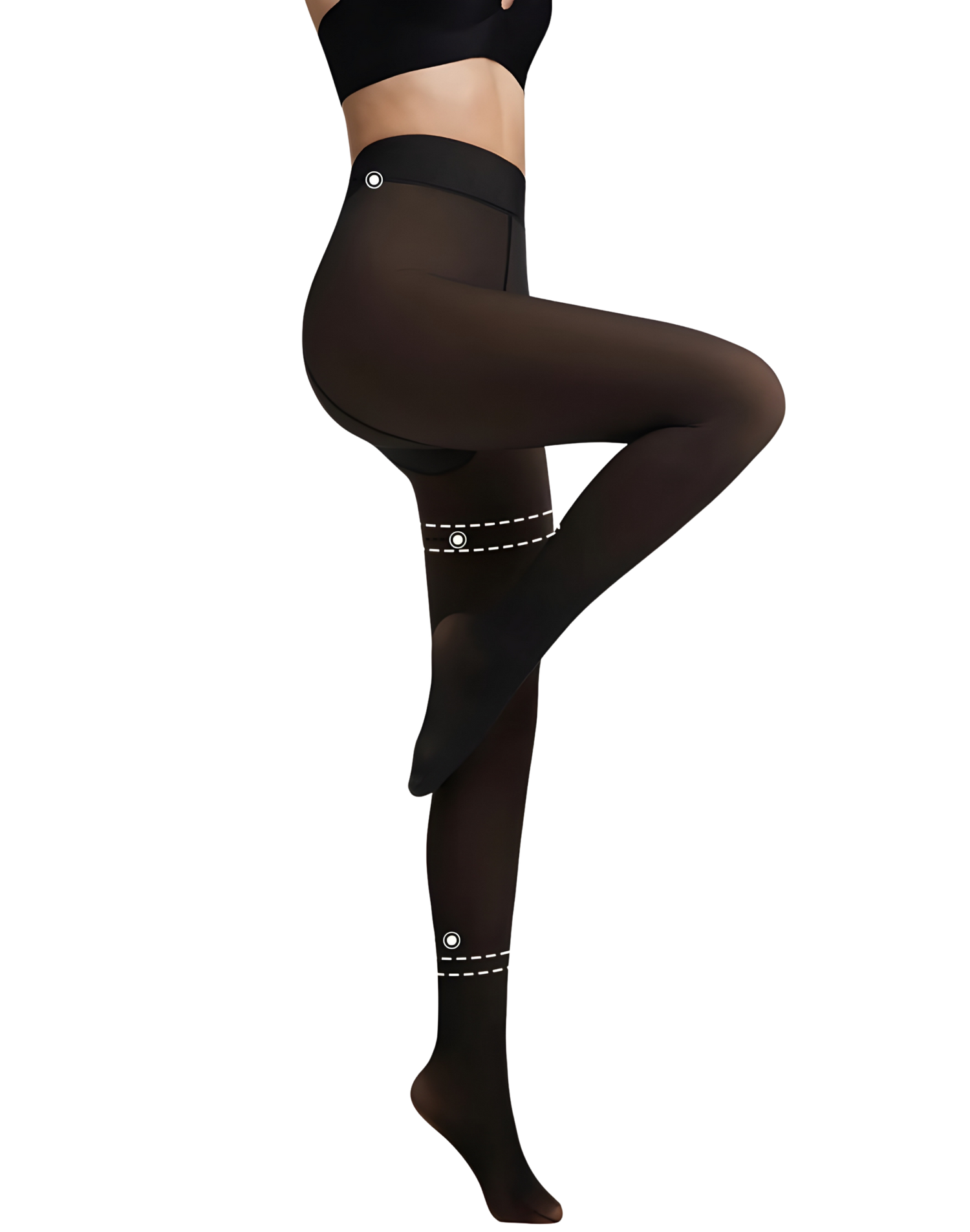 They look like classic pantyhose from the outside but feel like warm leggings inside—sleek, not bulky.